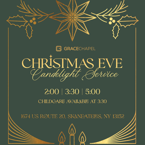 This Christmas Eve, join us as we celebrate the birth of Jesus Christ. We will be hosting candlelight services on Wednesday, December 24th at 2:00pm, 3:30pm, and 5:00pm. Childcare will be provided at the 3:30pm service for children ages 0–5. We look forward to giving glory to Jesus the newborn King with you and your family.